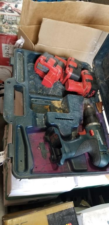 BOSCH DRILL IN CASE WITH 3 BATTERIES, NO CHARGER