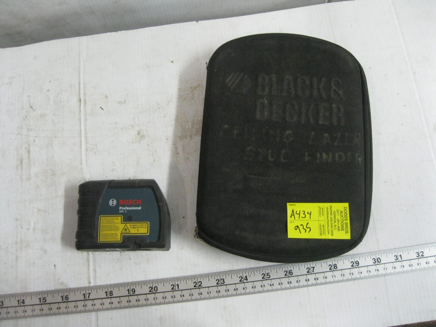 BOSCH LASER LEVEL & BLACK & DECKER CASED BULLSEYE STUD FINDER