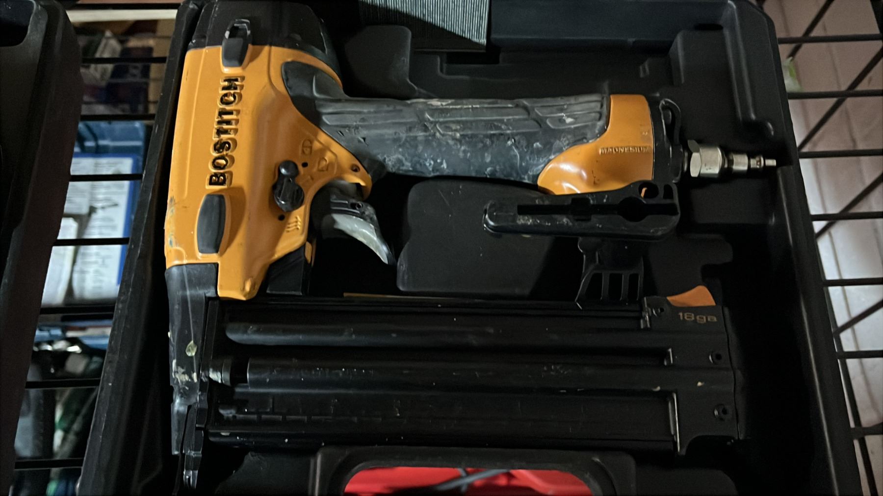 BOSTITCH PNEUMATIC BRAD NAILER IN A HARD TRANSPORT CASE