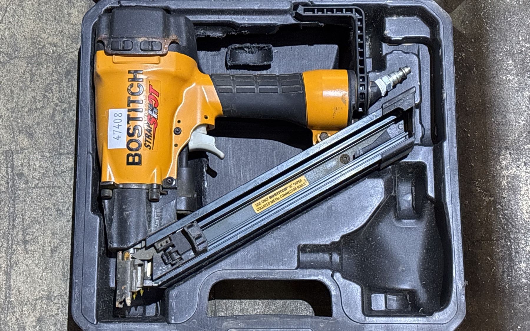BOSTITCH PNEUMATIC METAL CONNECTOR NAILER IN A HARD TRANSPORT CASE