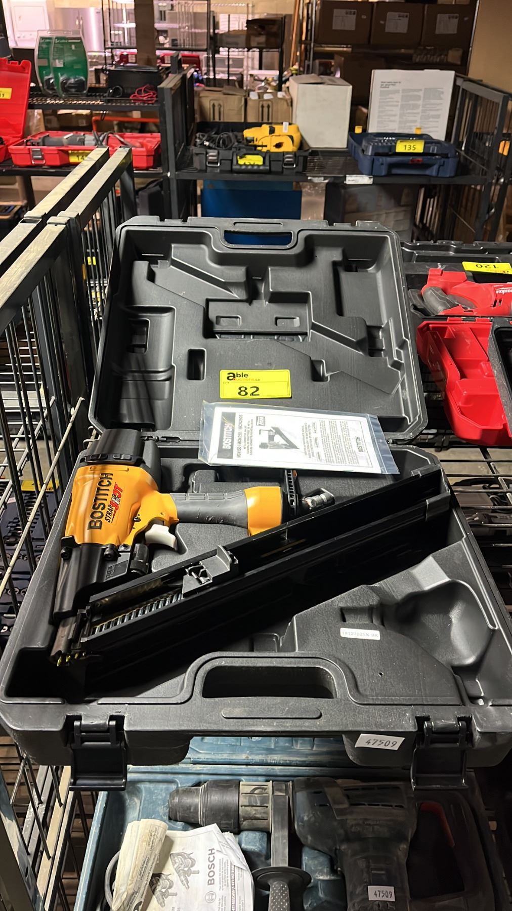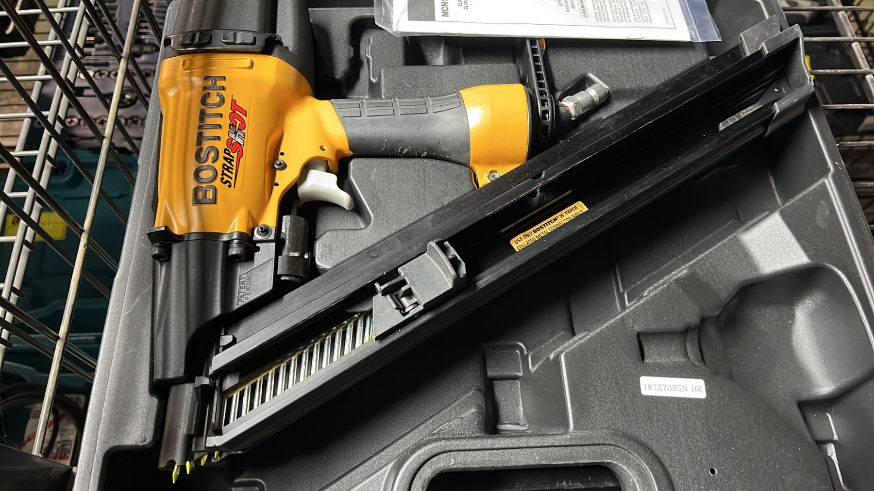 BOSTITCH PNEUMATIC METAL CONNECTOR NAILER IN A HARD TRANSPORT CASE