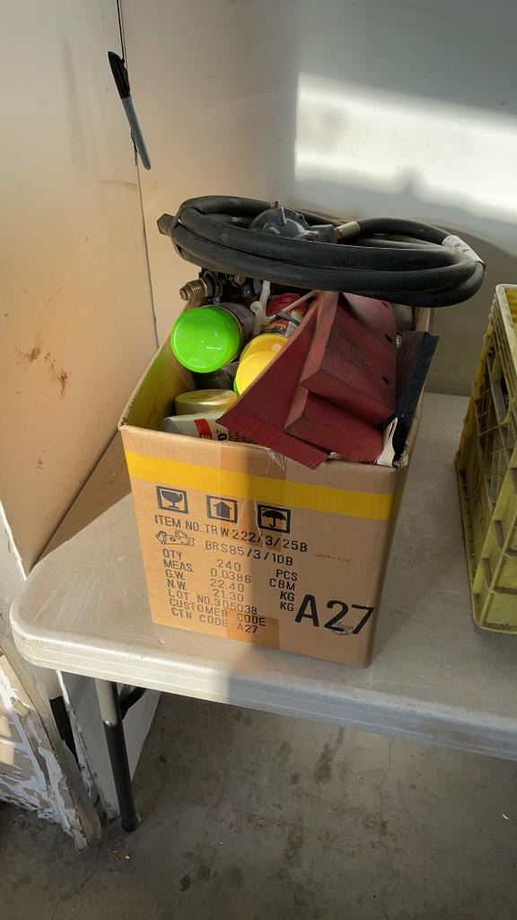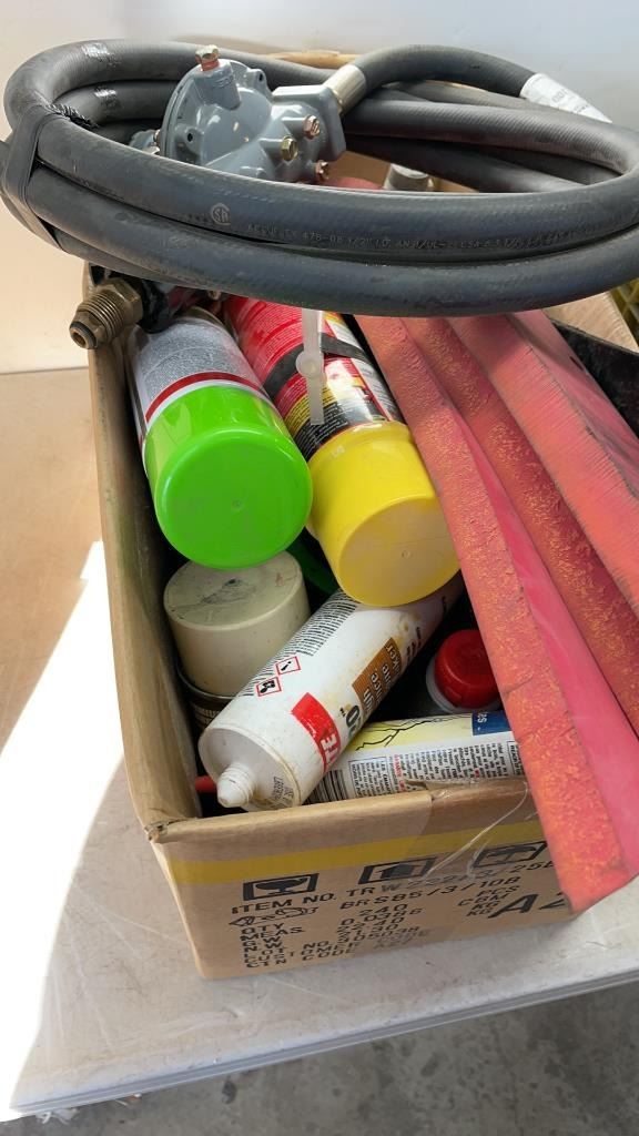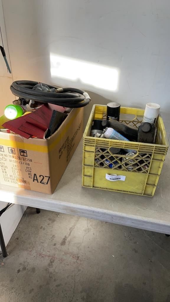 BOX AND TOTE OF SHOP FLUIDS, GAS HOSE