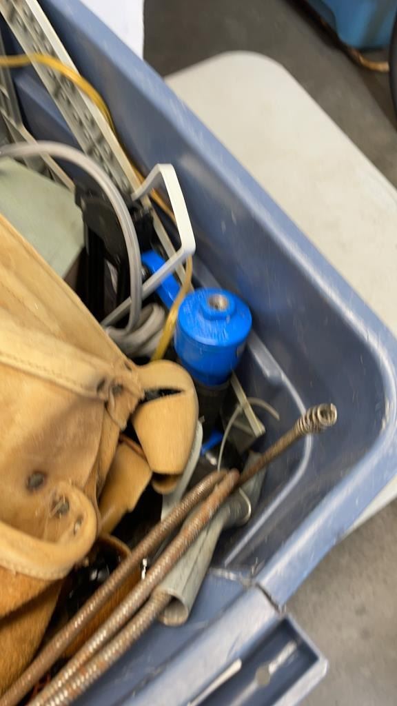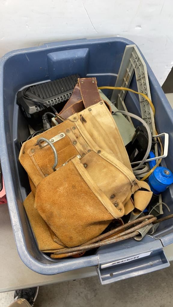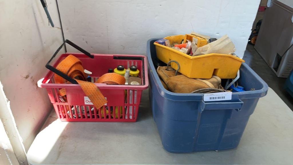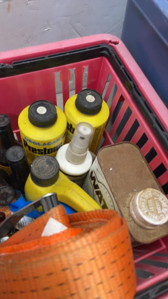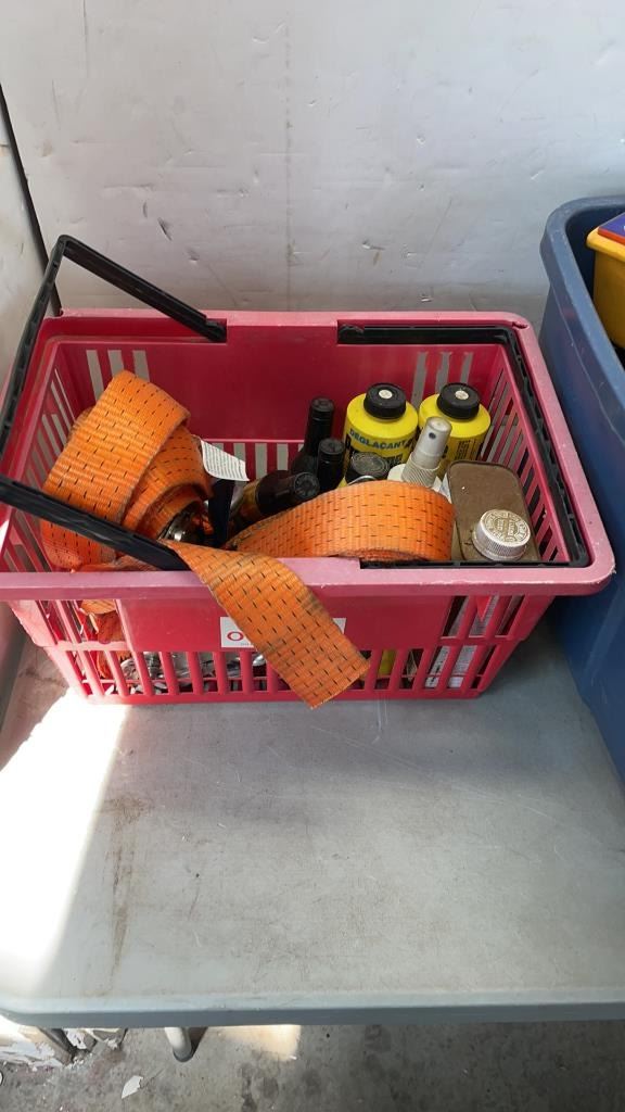 BOX BASKET AND CRATE OF TOOL, TOOL BELTS AND SHOP FLUIDS