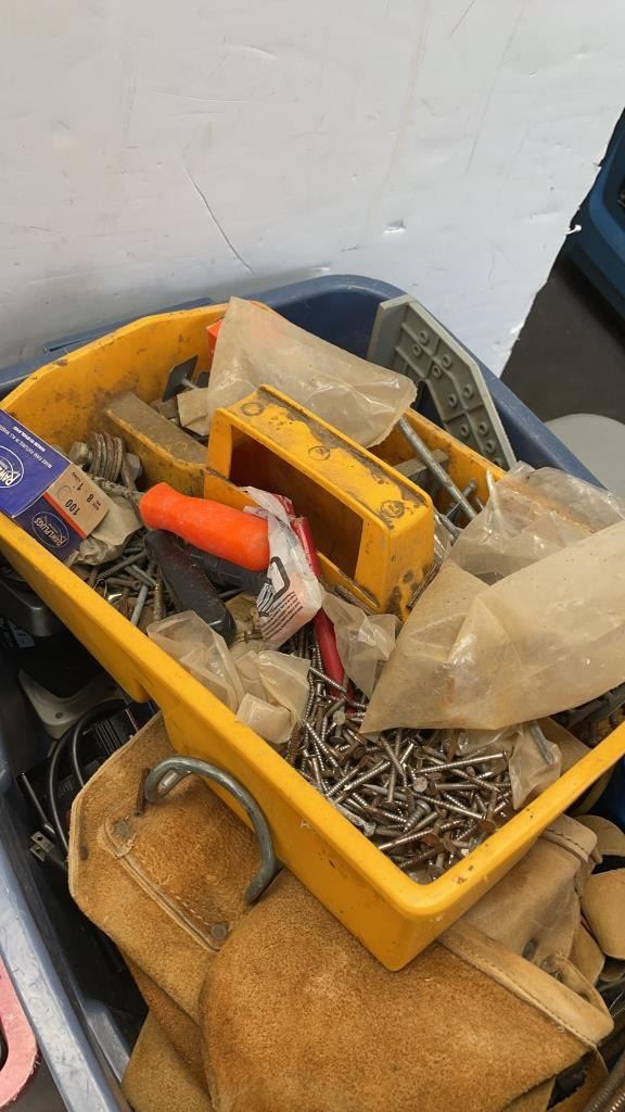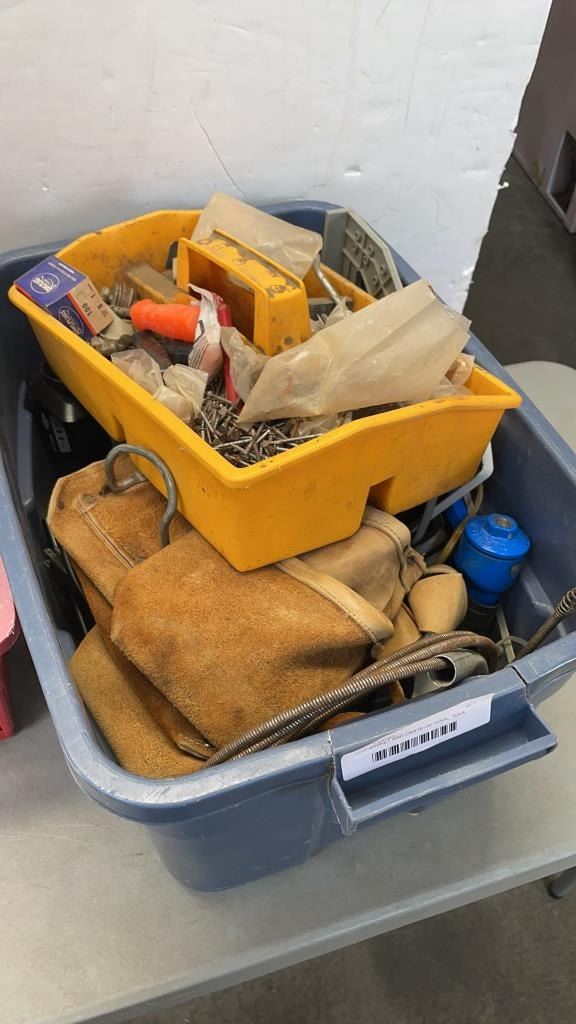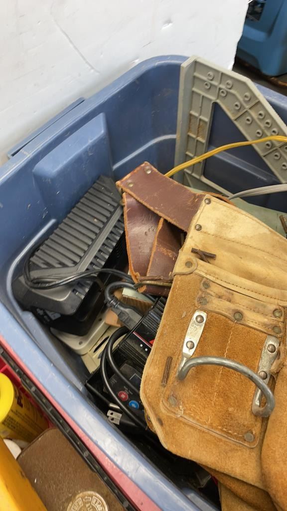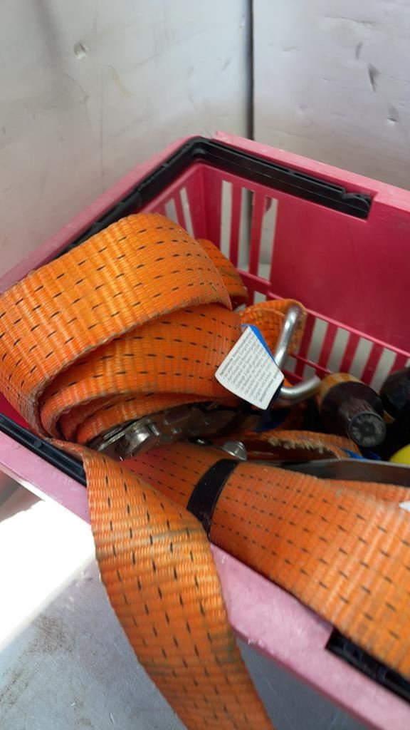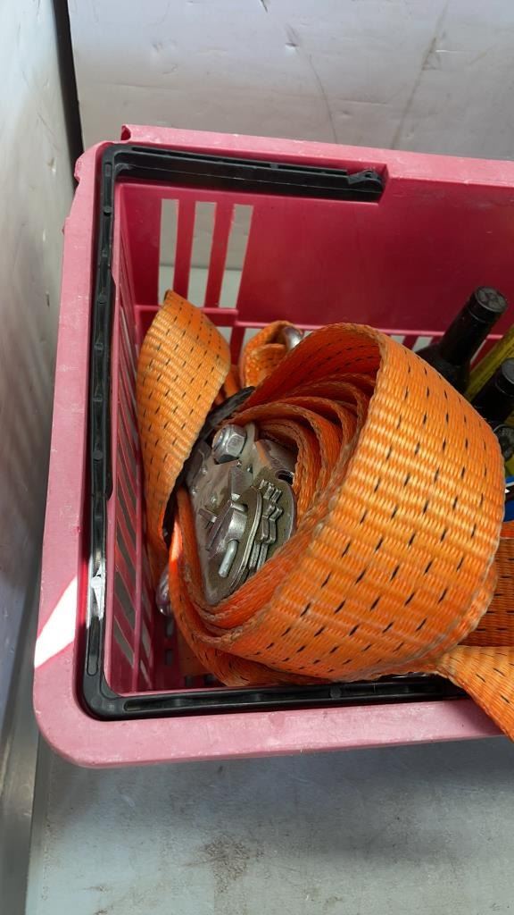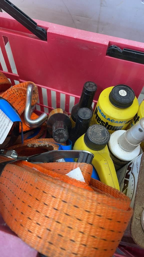 BOX BASKET AND CRATE OF TOOL, TOOL BELTS AND SHOP FLUIDS