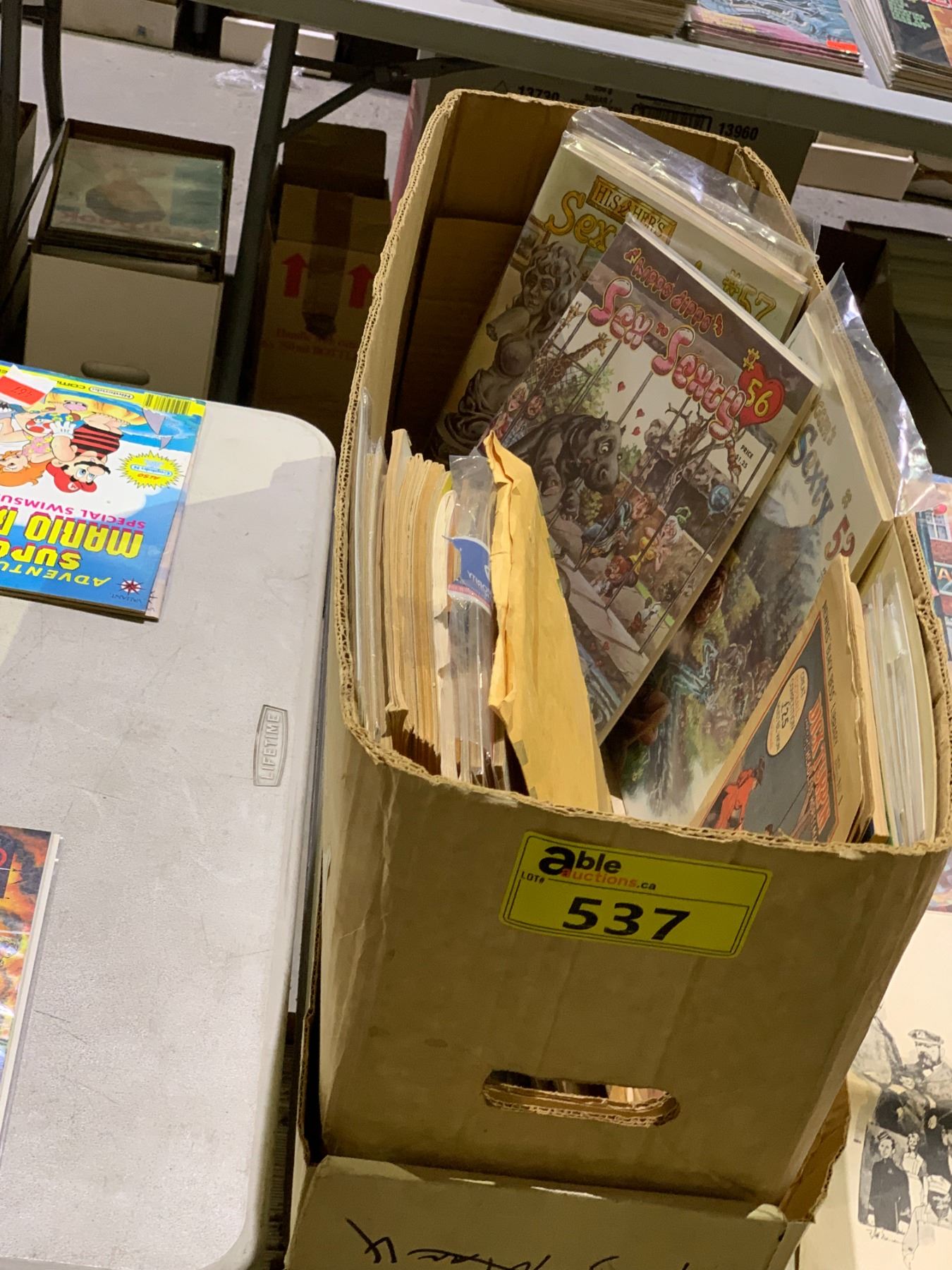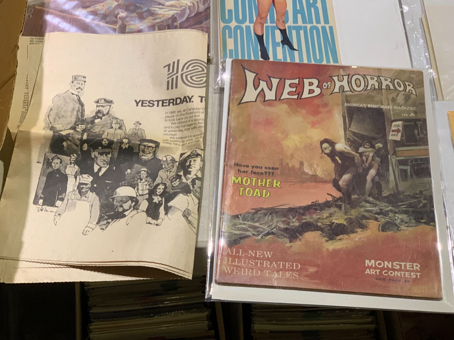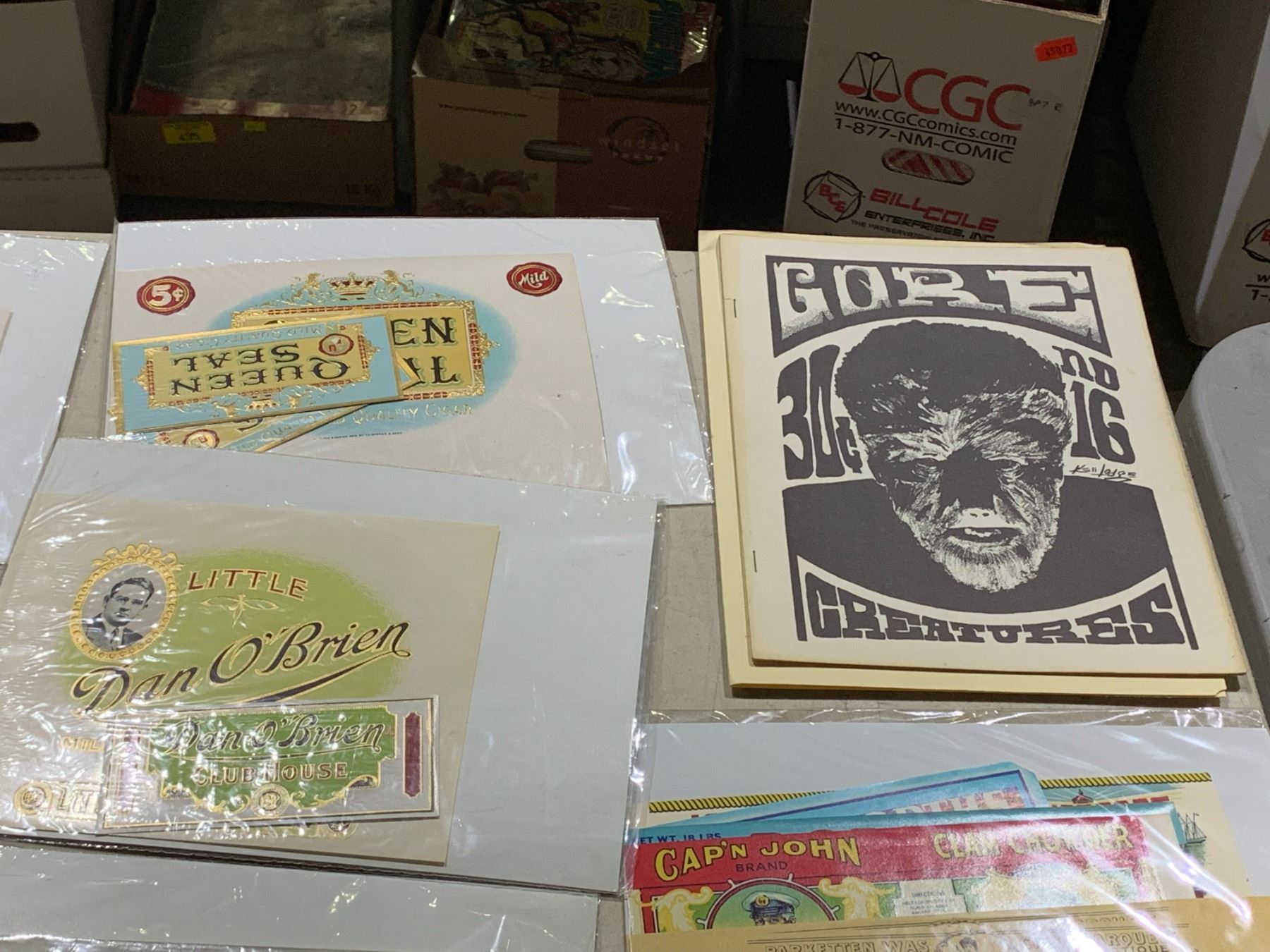 BOX BOOKS INCLUDING; SEX TO SEXY, EERIE MAGAZINE, CIGAR LABEL'S, MONSTERS, WEB OF HORROR AND MORE