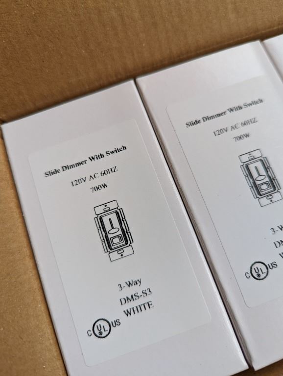 BOX OF 10 NEW 3 WAY LIGHTING SLIDE DIMMER WITH SWITCH RETAIL $170