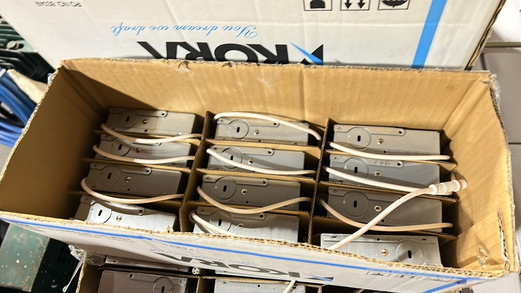 BOX OF 20 GALAXY 4" INTEGRATED LED DOWNLIGHT, 2 BOXES OF 24 KORA 5 INCH LED CEILING LIGHTS & 2 BOXES OF DRIVERS FOR LED 6" RECESSED LIGHTS