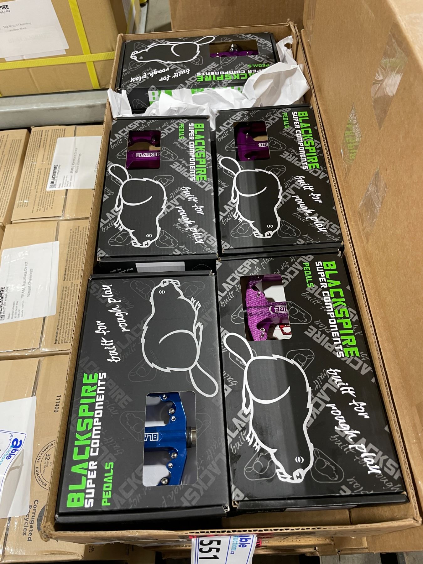 BOX OF 25 PAIRS ASSORTED COLOR BLACKSPIRE MTB ALLOY PEDALS