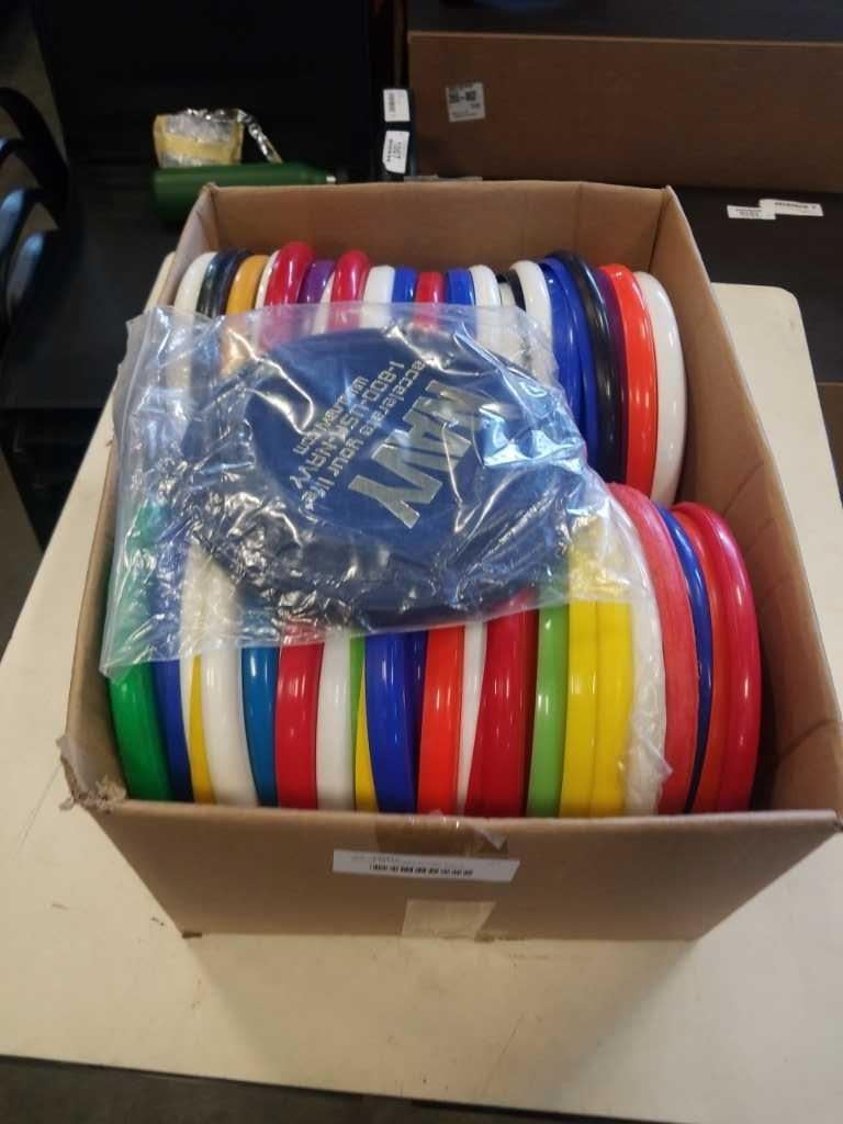 BOX OF 50 FRISBEE FLYING DISCS