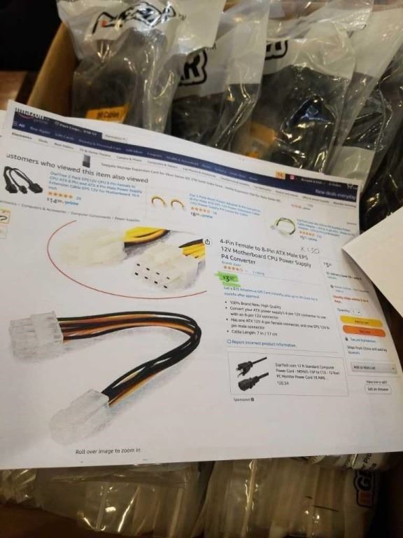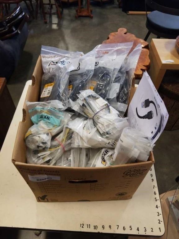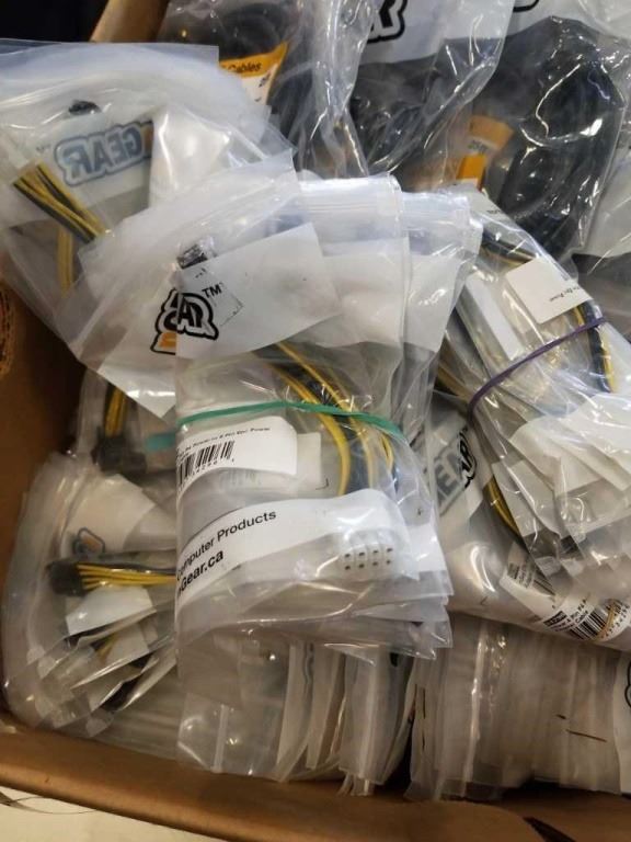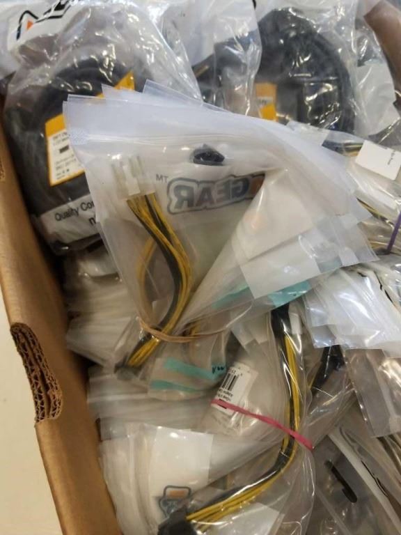 BOX OF 8 NEW DVI 4K VIDEO CABLES, 100 PIECES MICRO USB 3.0 EXTERNAL HD CORDS, AND 150 PIECES 4-8 PIN CONNECTORS POWER CABLES - TOTAL RETAIL $1749