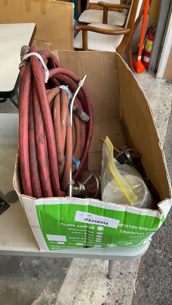 BOX OF AIR HOSE AND 2 AIR SPRAYERS