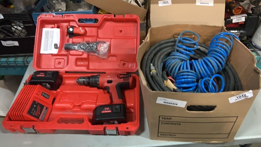 BOX OF AIRLINES AND MILWAUKEE CORDLESS 18VOLT 1/2" DRILL WORKING WITH BATTERY AND CHARGER