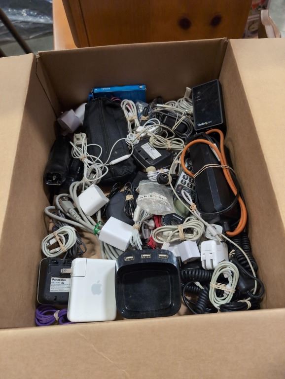 BOX OF APPLE LIGHTNING CORDS, APPLE CHARGER AND MORE