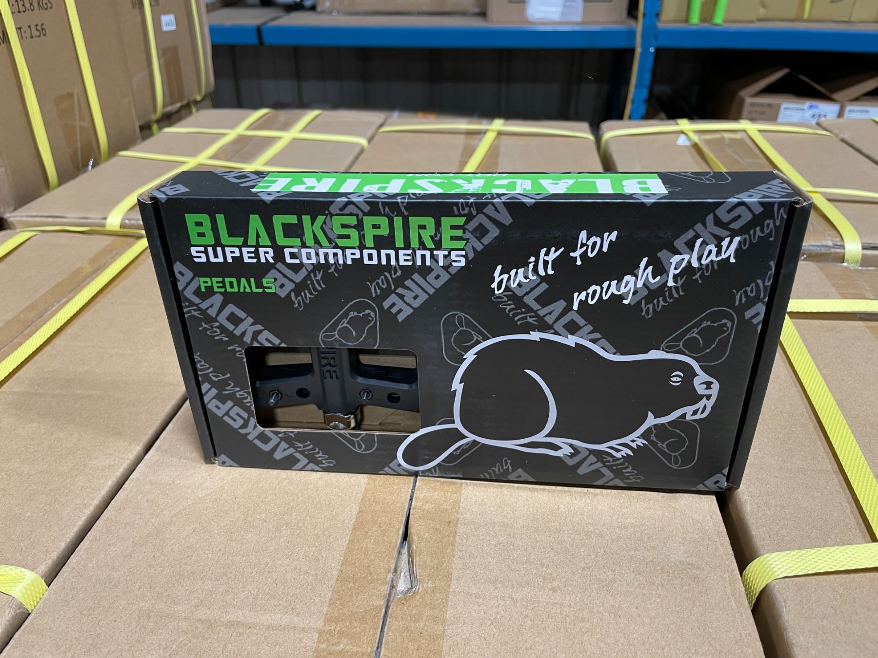 BOX OF APPROX 30 BLACKSPIRE BLACK NYLON PEDALS
