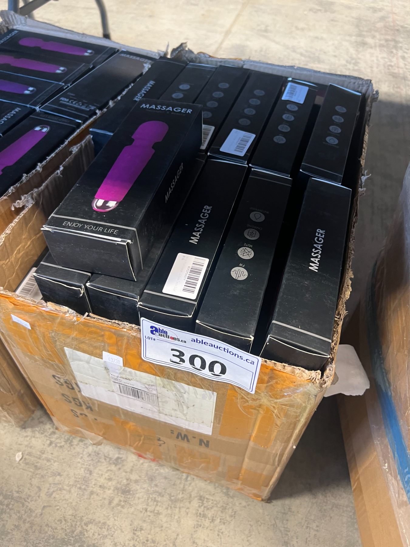 BOX OF APPROXIMATELY 65 SILICONE RECHARGEABLE WATER PROOF PERSONAL VIBRATING MASSAGER WAND