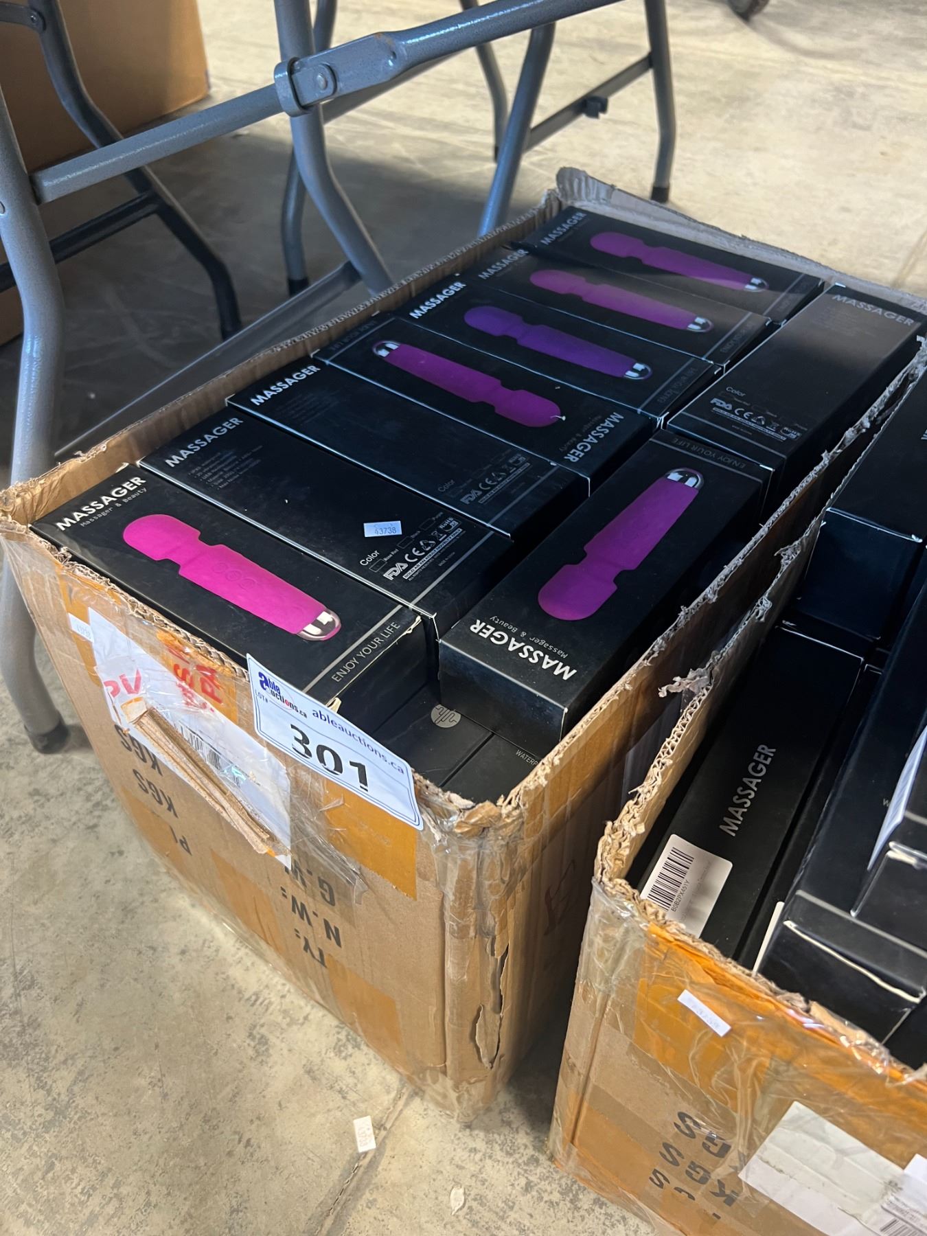 BOX OF APPROXIMATELY 65 SILICONE RECHARGEABLE WATER PROOF PERSONAL VIBRATING MASSAGER WAND