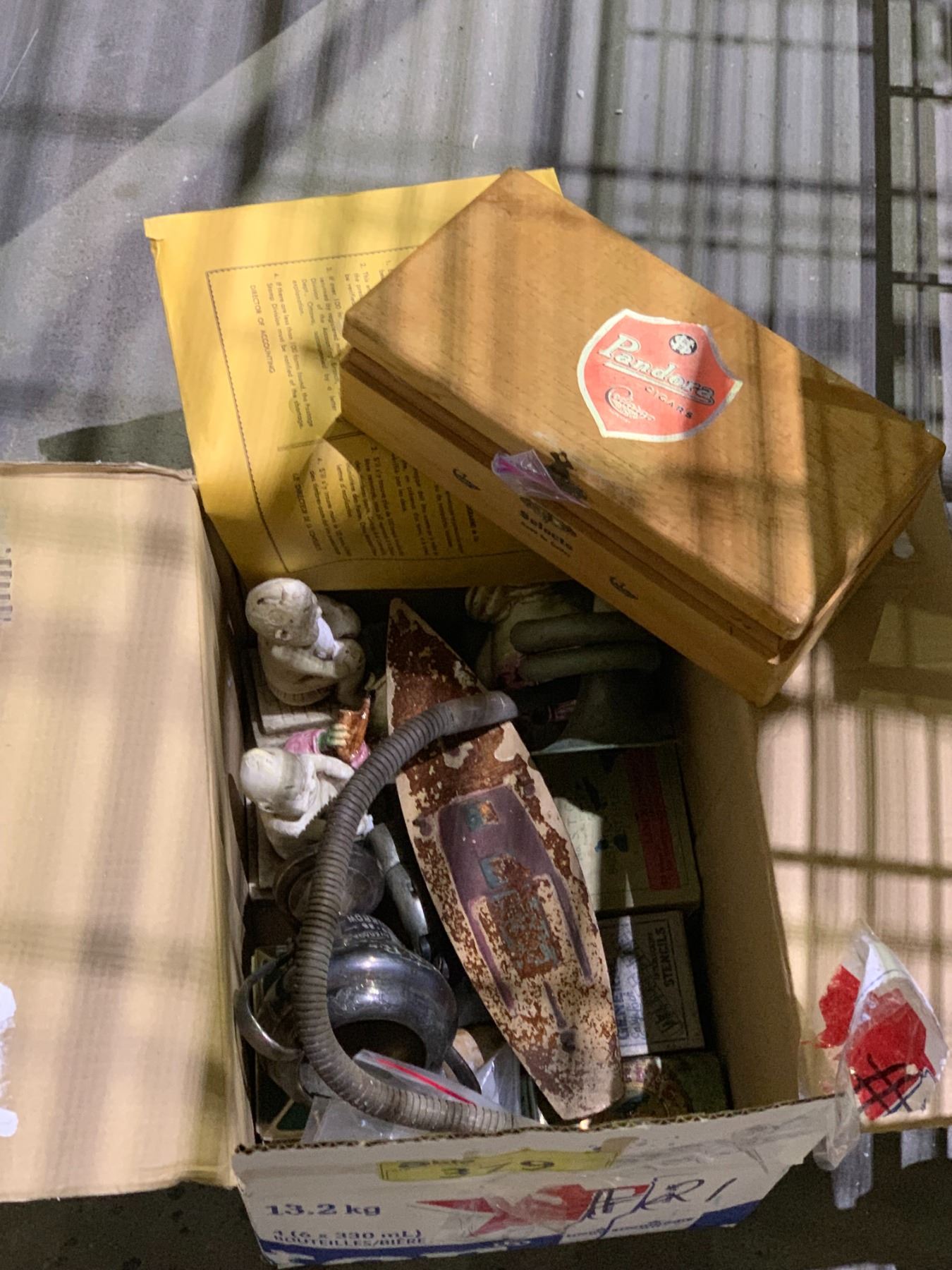 BOX OF ASSORTED COLLECTABLES; BOOKENDS, VINTAGE TINS AND MORE