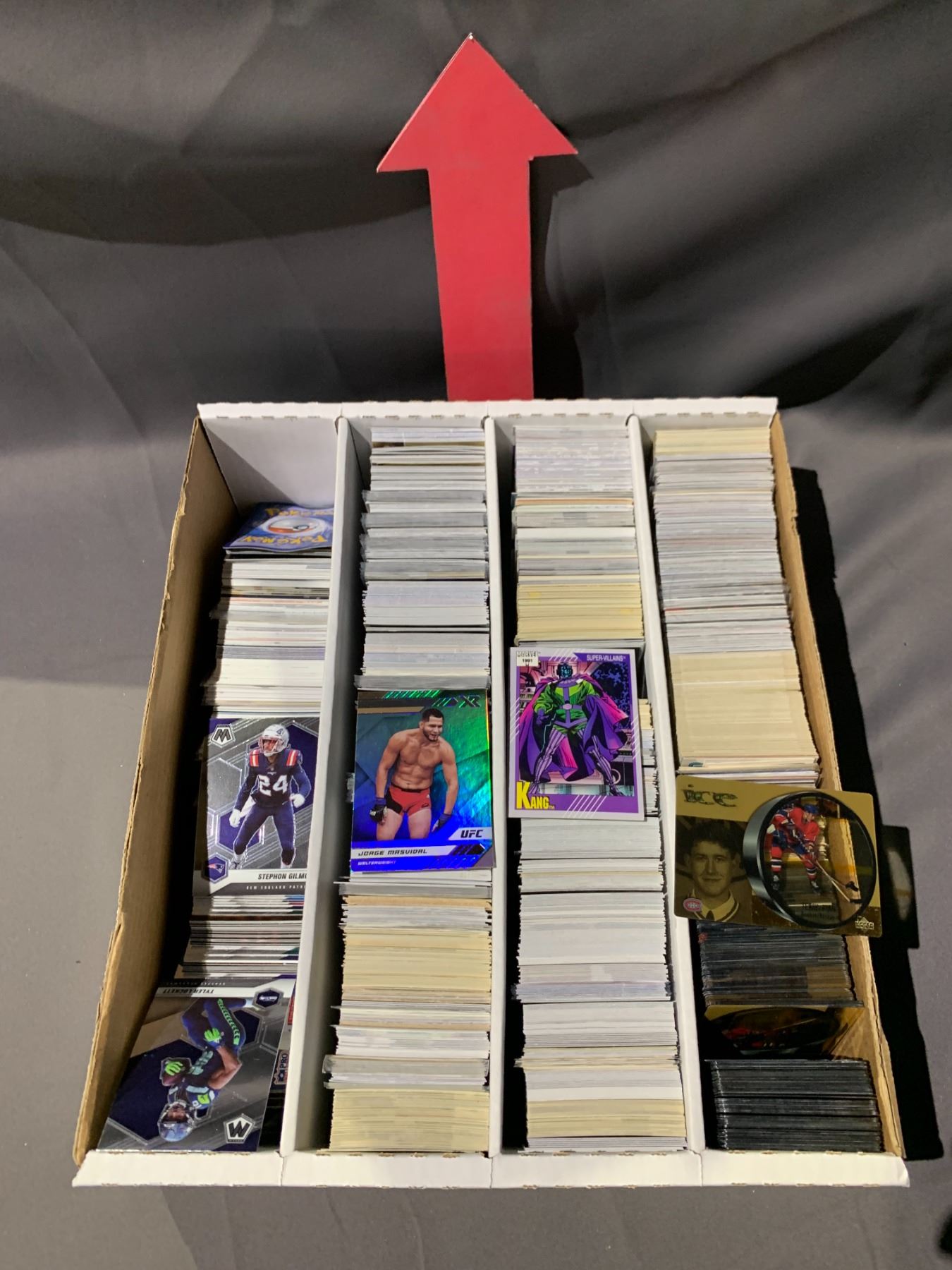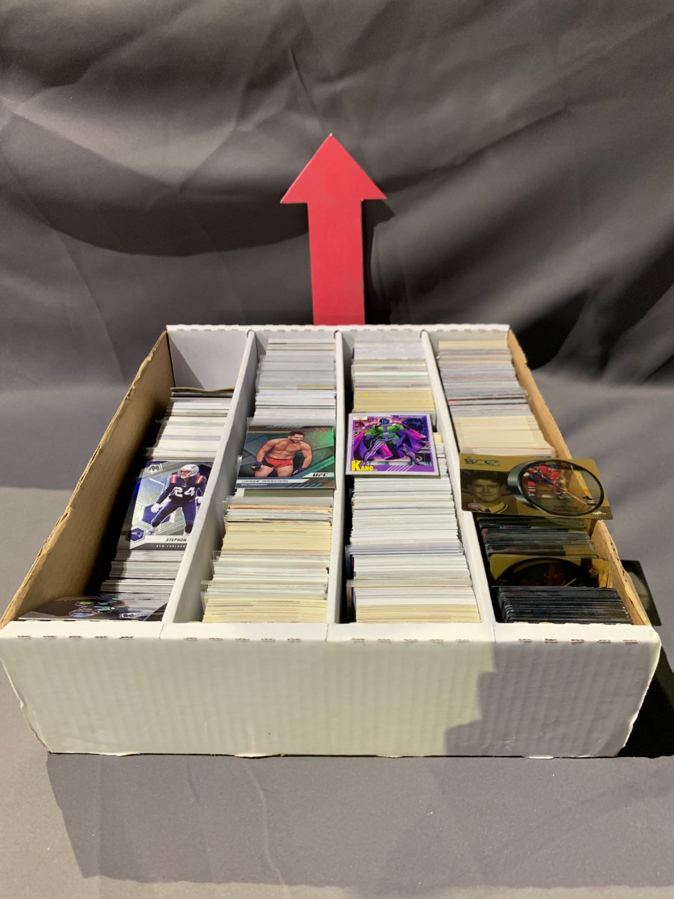BOX OF ASSORTED COLLECTIBLE CARDS INCLUDING; HOCKEY, MMA, MARVEL & MORE