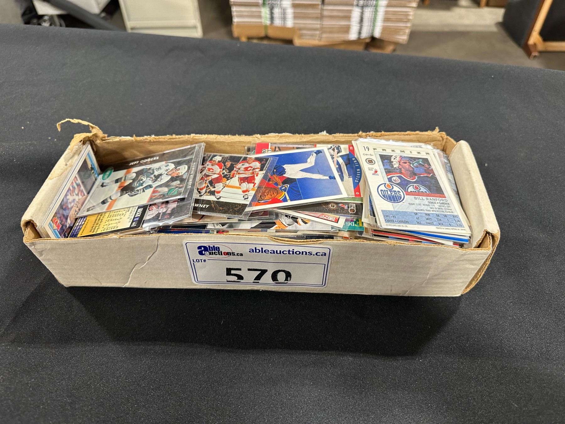 BOX OF ASSORTED COLLECTIBLE HOCKEY CARDS & 3 ASSORTED BLUE RAY DISCS