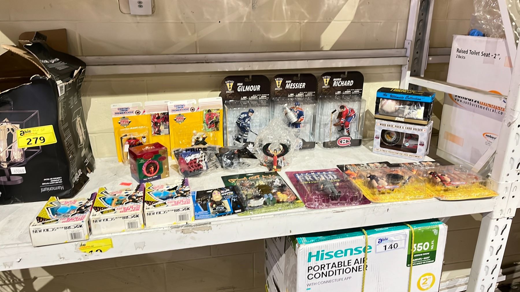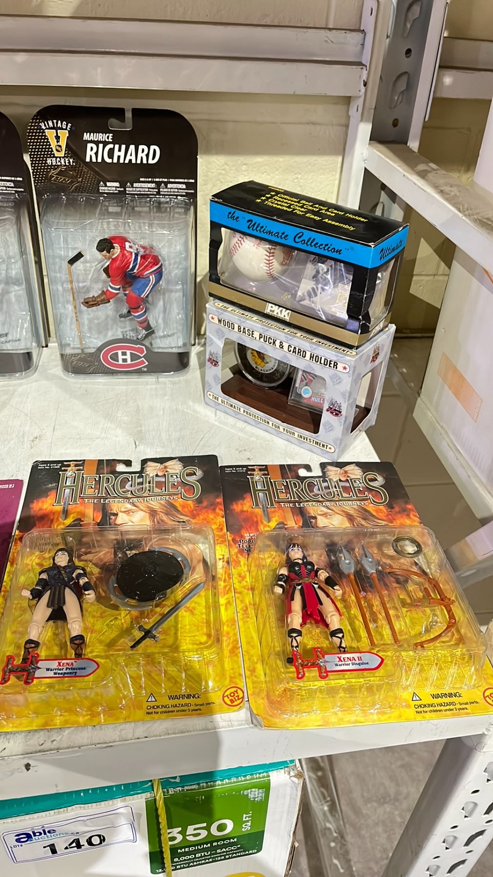 BOX OF ASSORTED COLLECTIBLES INCLUDING; MAURICE RICHARD FIGURE, HERCULESE THE LEGENDARY JOURNEYS
