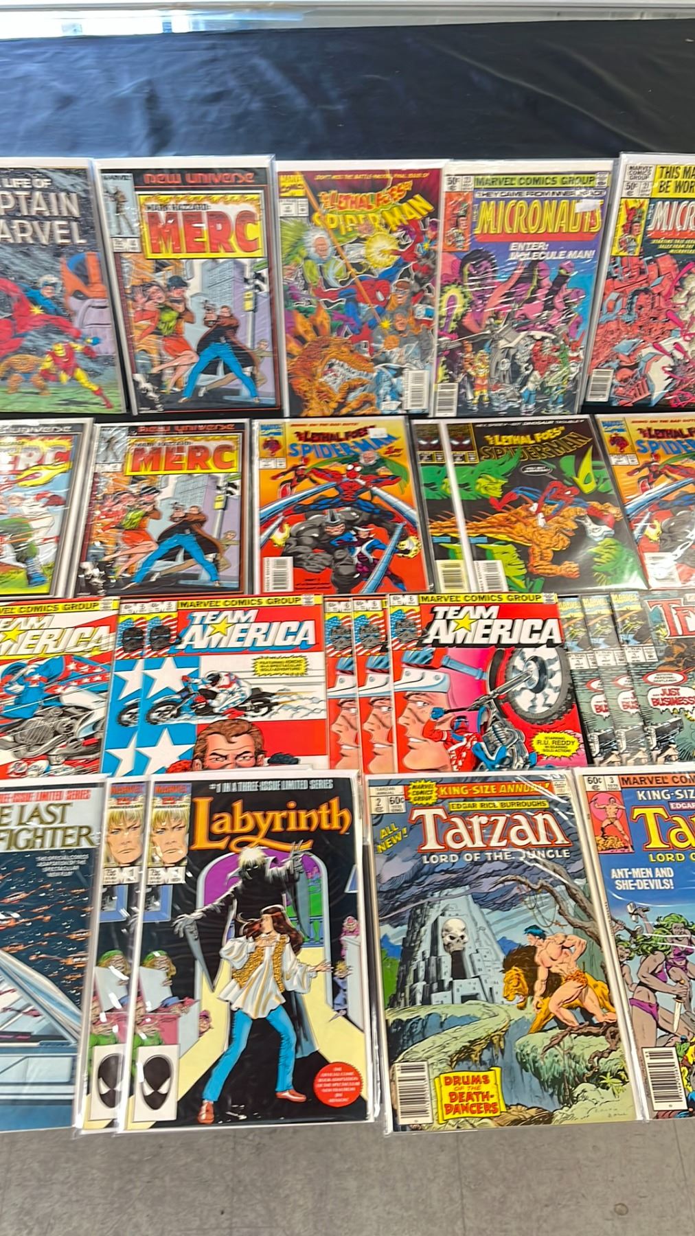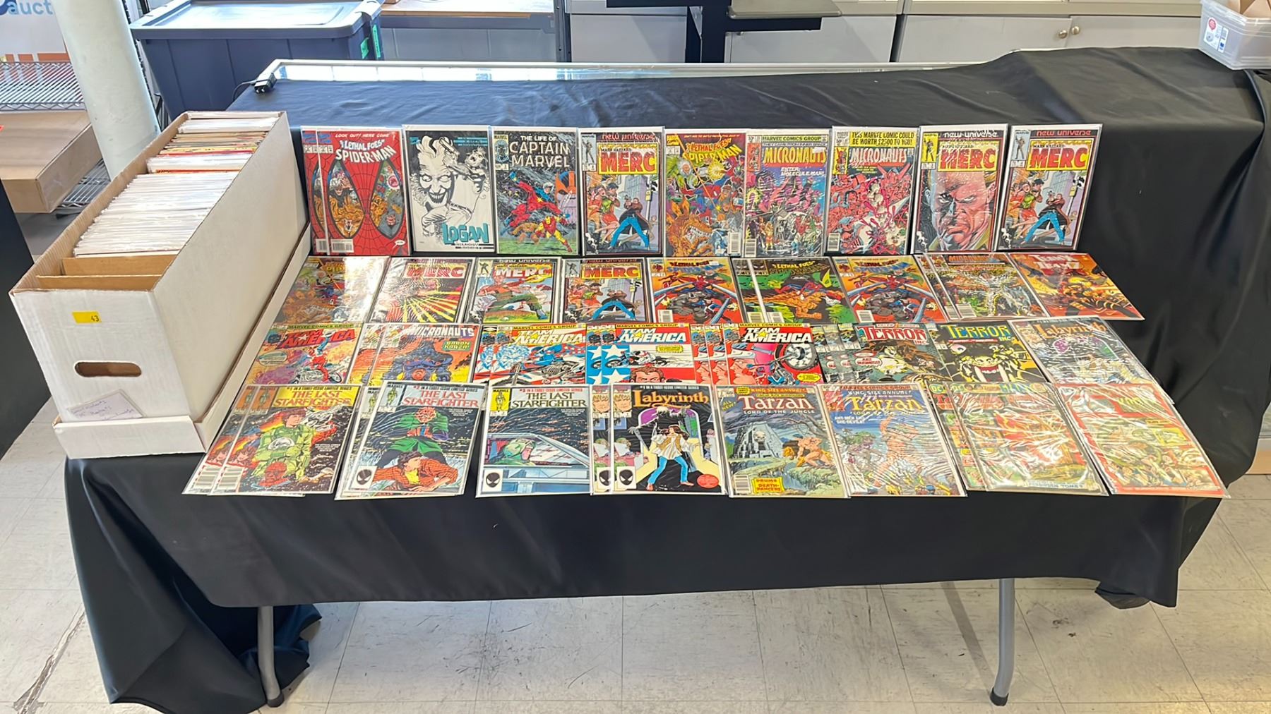 BOX OF ASSORTED COMIC BOOKS INCLUDING; THE LETHAL FOES OF SPIDER-MAN, THE LIFE OF CAPTAIN MARVEL, THE MICRONAUTS & MORE
