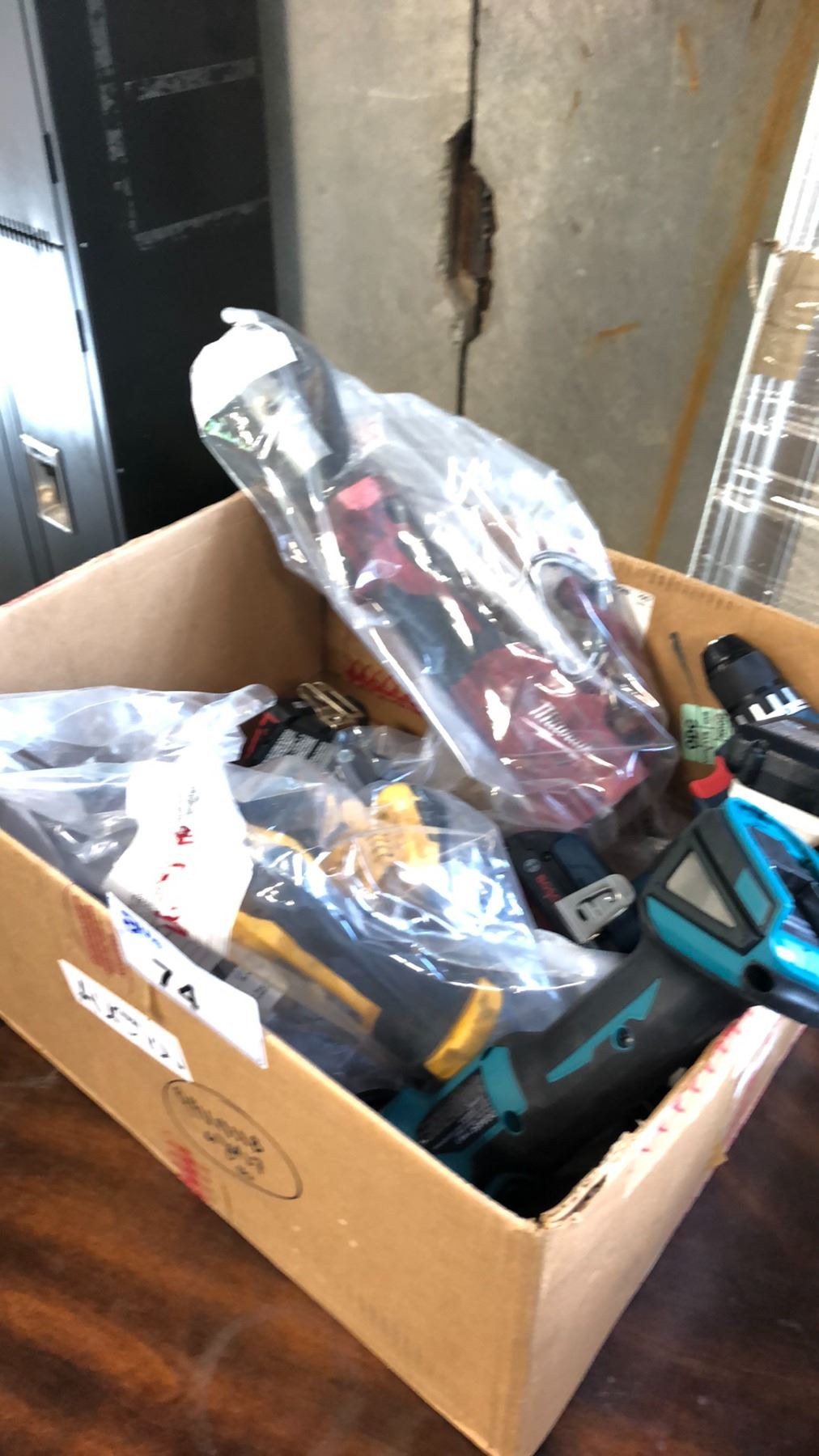 BOX OF ASSORTED CORDLESS TOOLS INCLUDING BOSCH, DEWALT, MAKITA AND MILWAUKEE