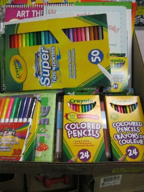 BOX OF ASSORTED CRAYOLA COLORED PENCILS, ART BOOKS