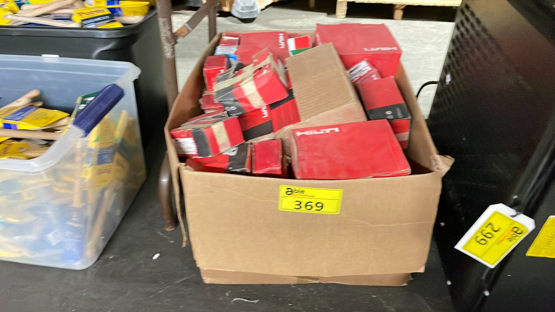 BOX OF ASSORTED INDUSTRIAL HILTI HARDWARE