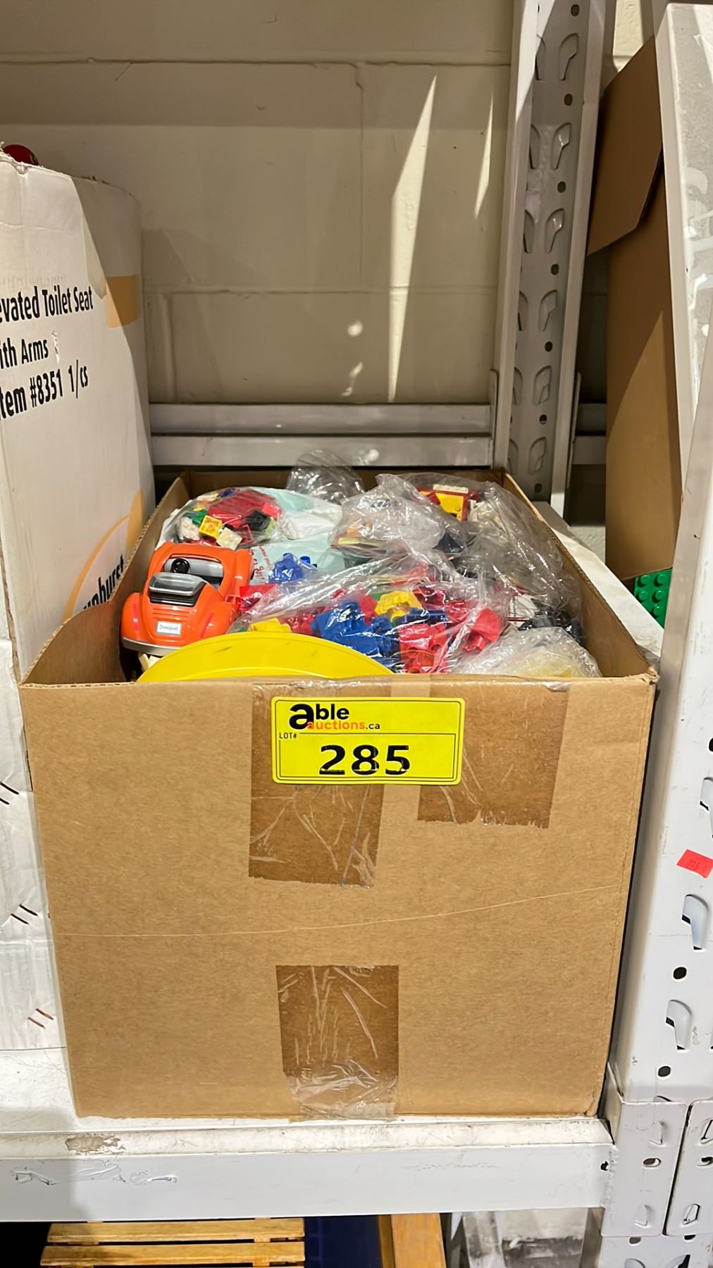 BOX OF ASSORTED TOYS INCLUDING; LEGO, MEGA BLOCKS, AUTOPIA CAR & MORE