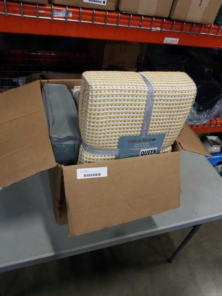 BOX OF BED SHEETS, FULL SIZE AND QUEEN SIZE BLANKET