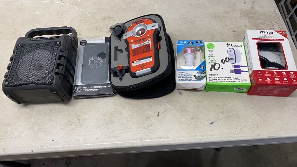 BOX OF BULLEYE LASER LEVEL, SYLVANIA SPEAKER, ITIME WATCH AND MORE
