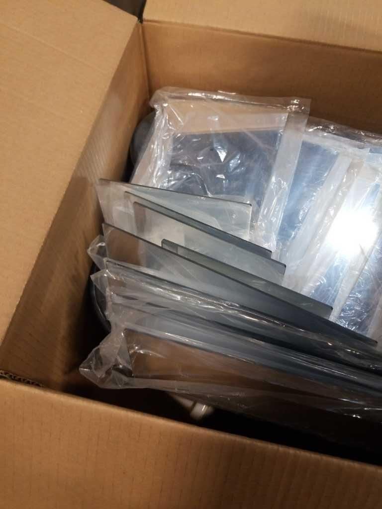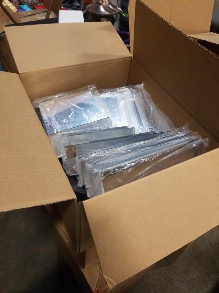 BOX OF CANNISTERS AND SIGN HOLDERS