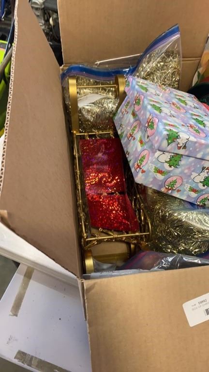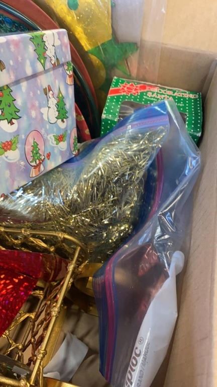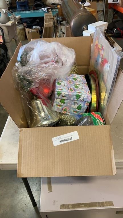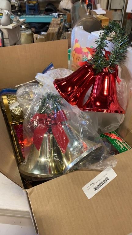 BOX OF CHRISTMAS BELLS, SLEIGH AND OTHER DECOR