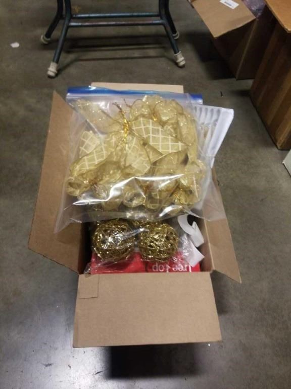 BOX OF CHRISTMAS HOLIDAY TREE ORNAMENTS, BALLS AND MORE