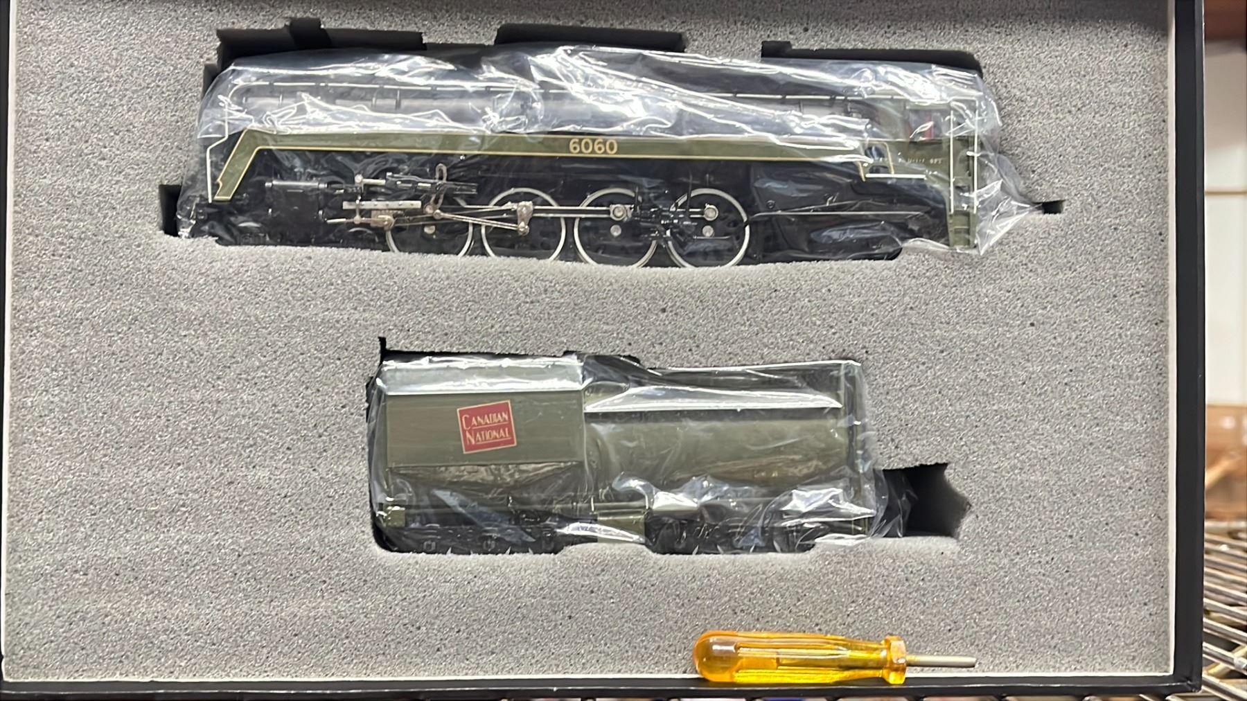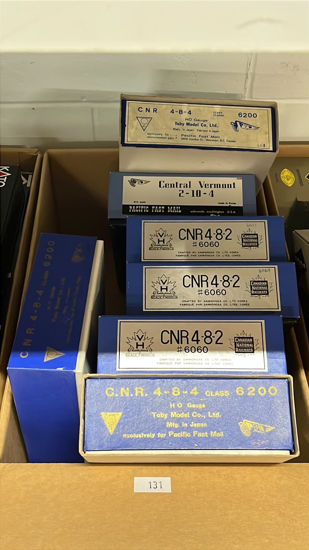 BOX OF CNR HO GAUGE MODEL TRAINS : 4-8-4 6200, 4-8-2 6060 & CENTRAL VERMONT 2-10-4