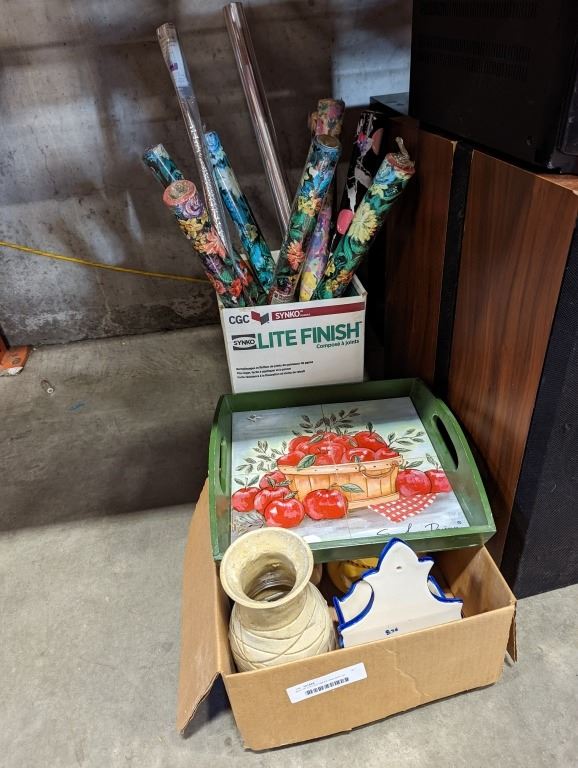 BOX OF COLLECTIBLES AND BOX OF WRAPPING PAPER