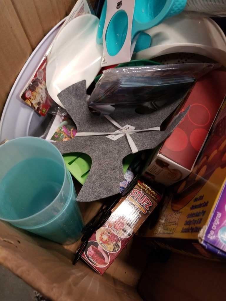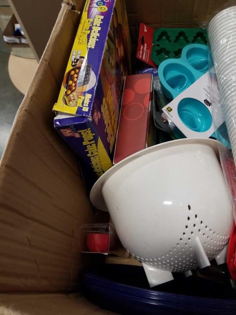 BOX OF COOKING ITEMS, DISPOSABLE CUPS AND ESTATE GOODS