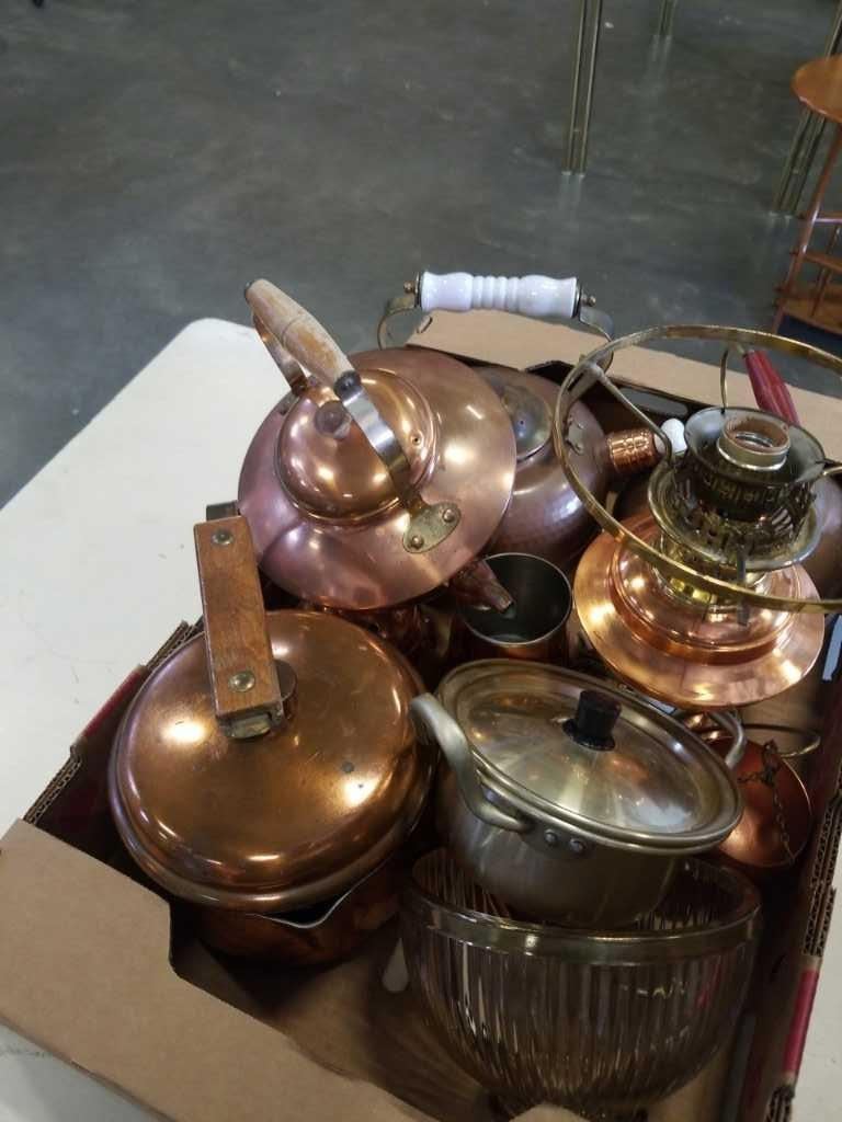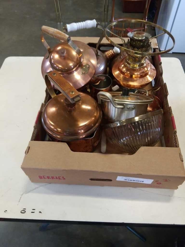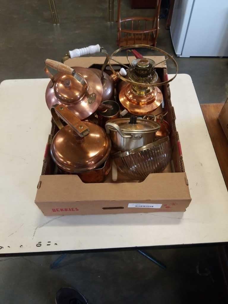 BOX OF COPPER AND BRASS COLLECTIBLES
