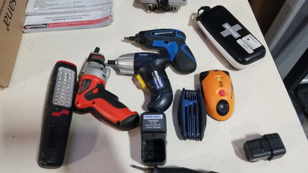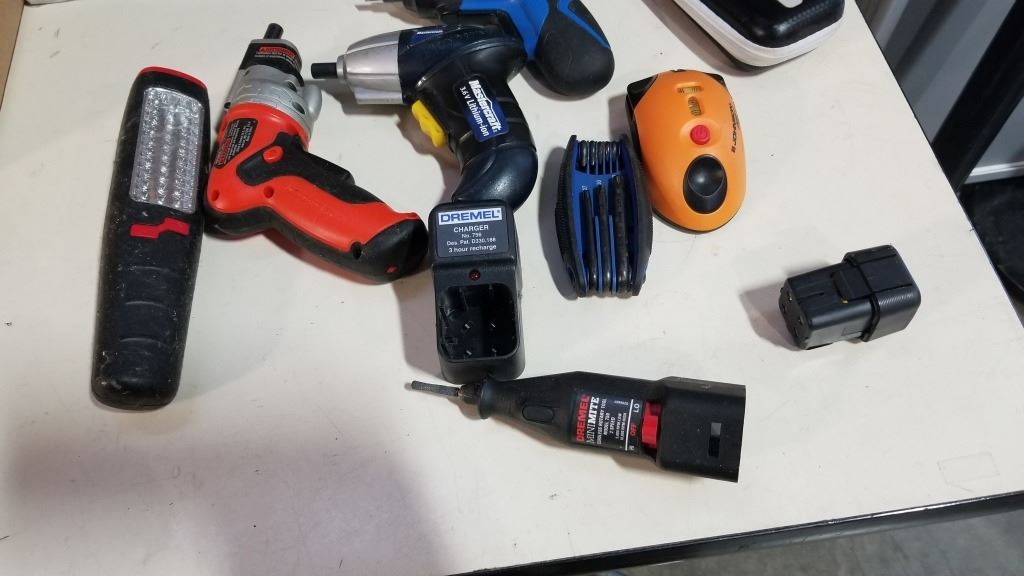 BOX OF CORDLESS DREMEL WITH CHARGER BATTERY AND MORE