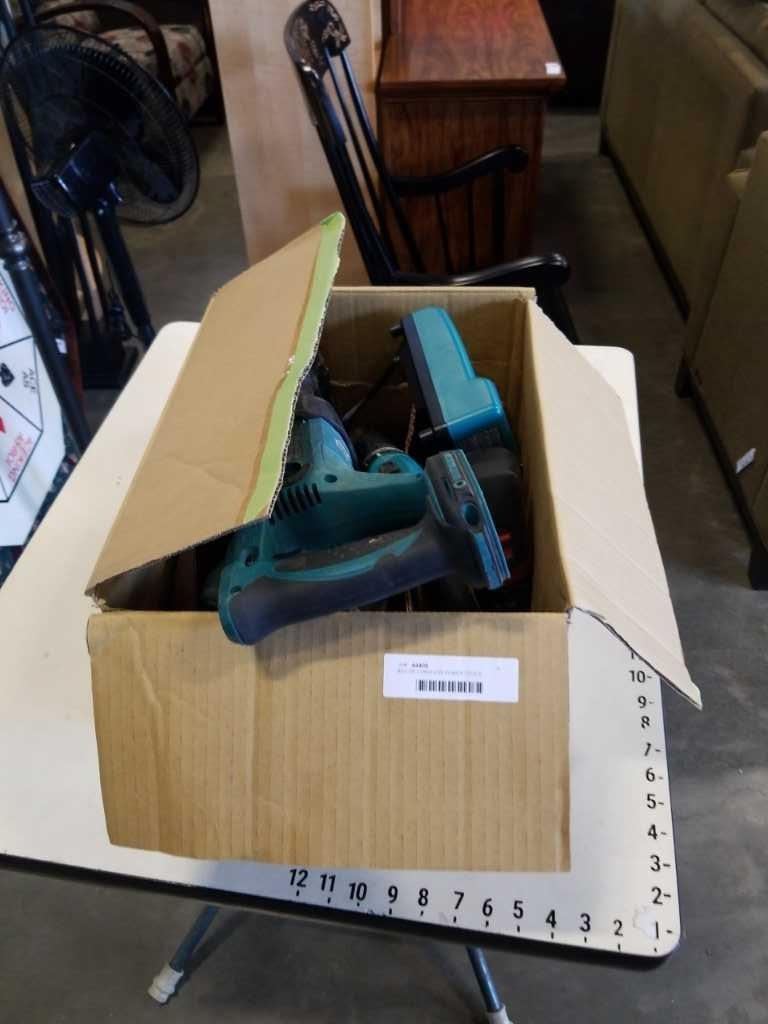 BOX OF CORDLESS POWER TOOLS - MAKITA, HILTI, MAKITA SAWZALL, IMPACT AND DRILL, HILTI CORDLESS DRILL