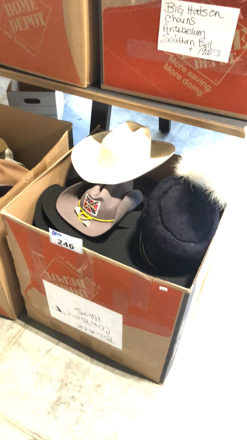 BOX OF COWBOY HATS ETC