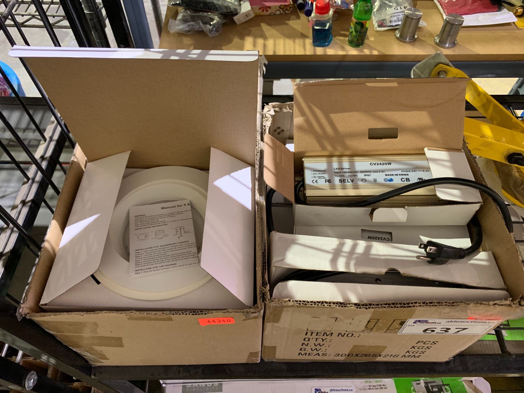 BOX OF DOWNLIGHTS, BOX OF LED DRIVERS AND WALL MOUNT WALL FIXTURE