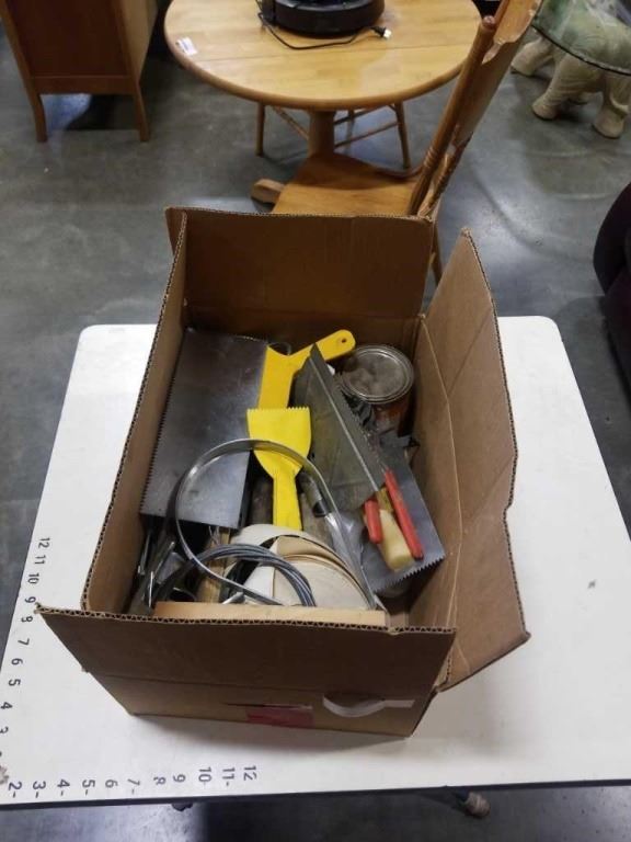 BOX OF DRYWALL AND PAINTING TOOLS