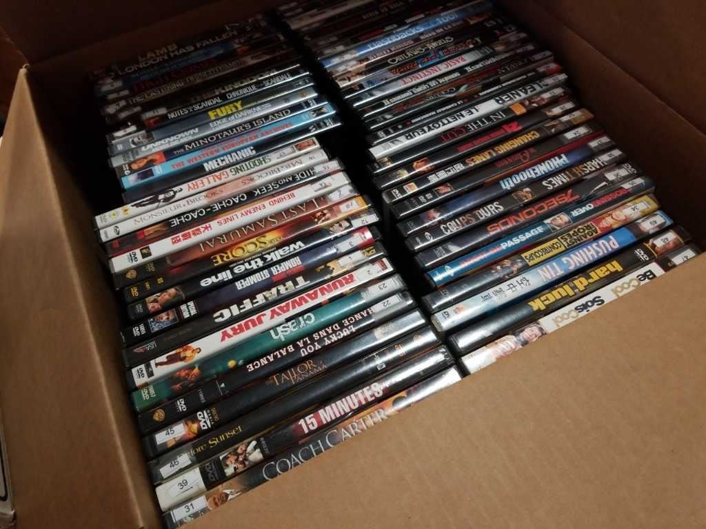 BOX OF DVDS AND 5.1 SURROUND COMPUTER SPEAKERS