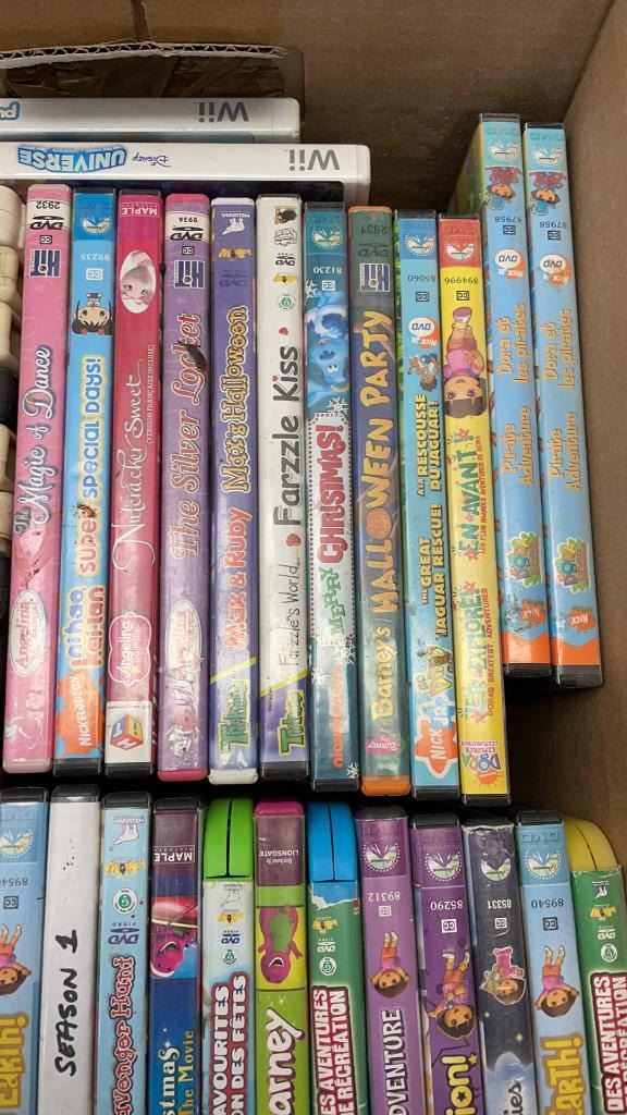 BOX OF DVDS WITH ROUTER AND NEW STRAIGHT UP STYLING TOOL
