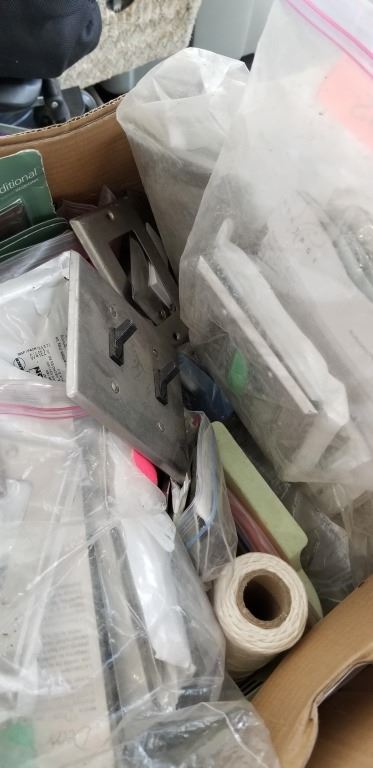 BOX OF ELECTRICAL, LIGHT SWITCHES AND MORE