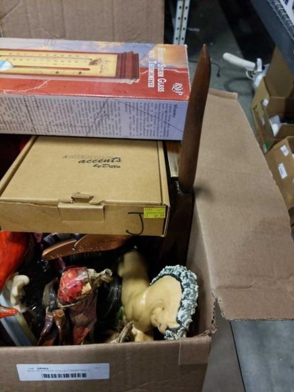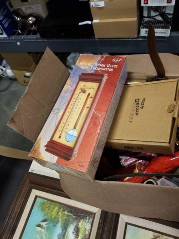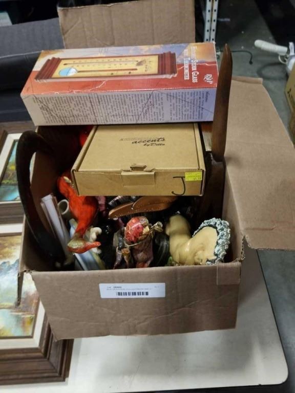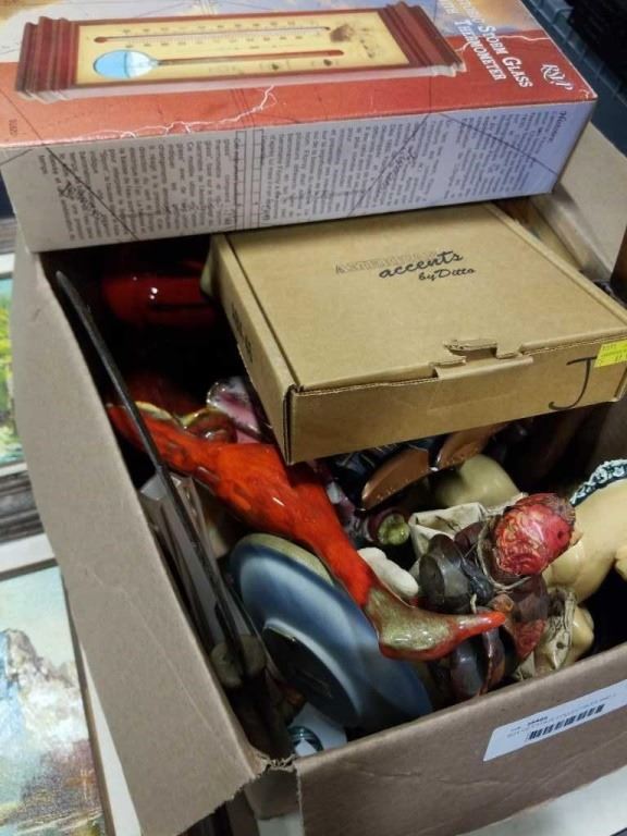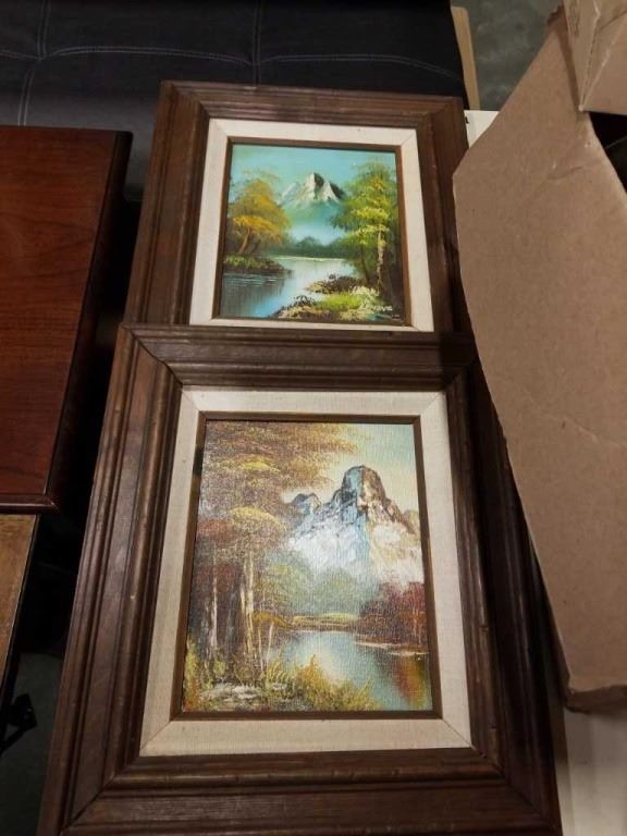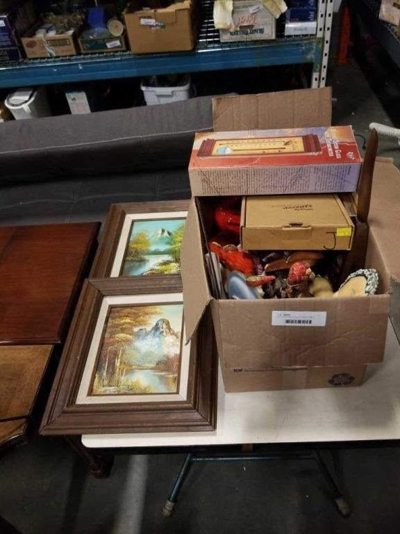 BOX OF ESTATE COLLECTIBLES AND 2 SIGNED OIL PAINTINGS
