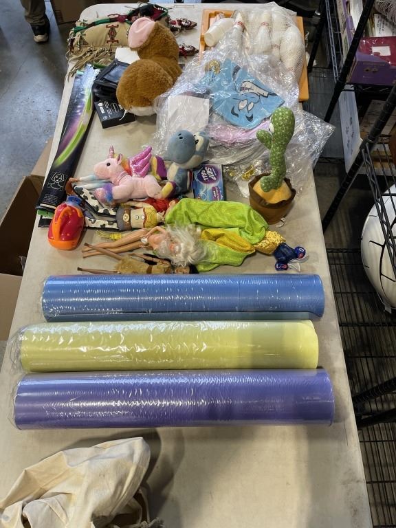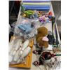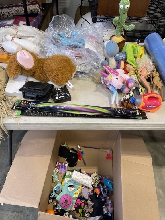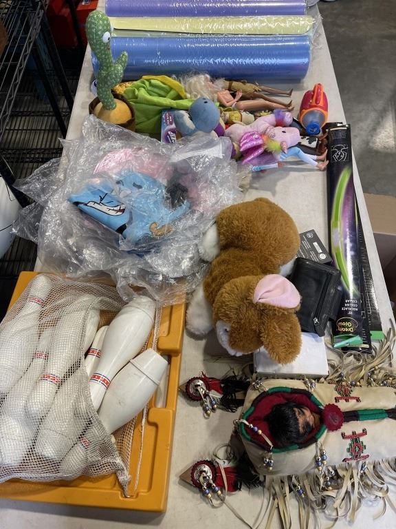 BOX OF FOIL BALLOONS, LIGHT UP NECKLACES, SACAGAWEA DOLL AND MORE