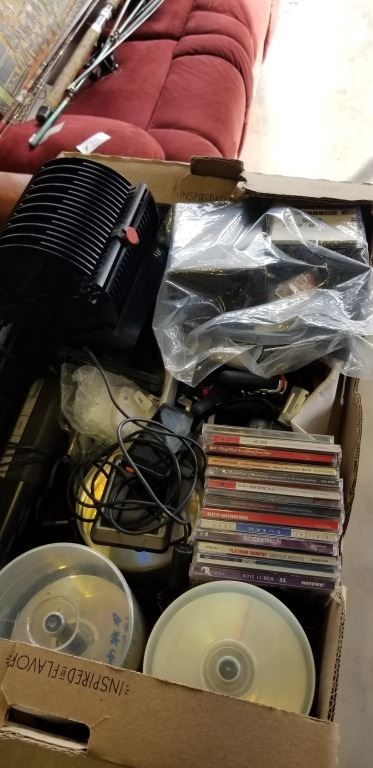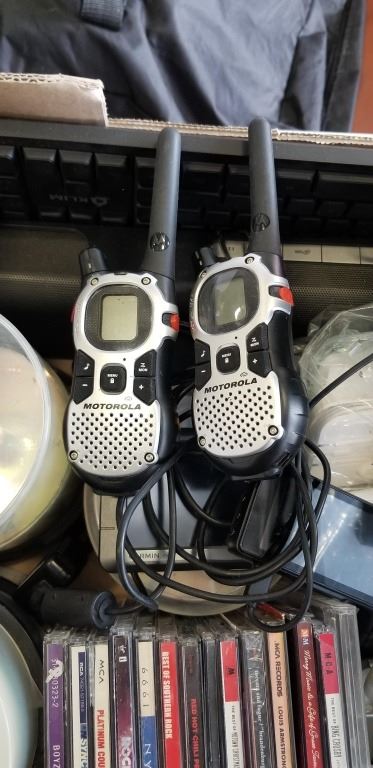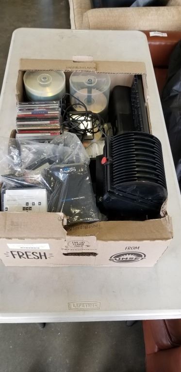 BOX OF GPS, DVD-R DISC WALKIE TALKIES AND MORE