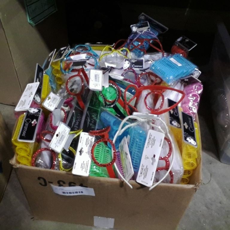 BOX OF HEADBANDS, HAIR ROLLERS, ACCESSORIES